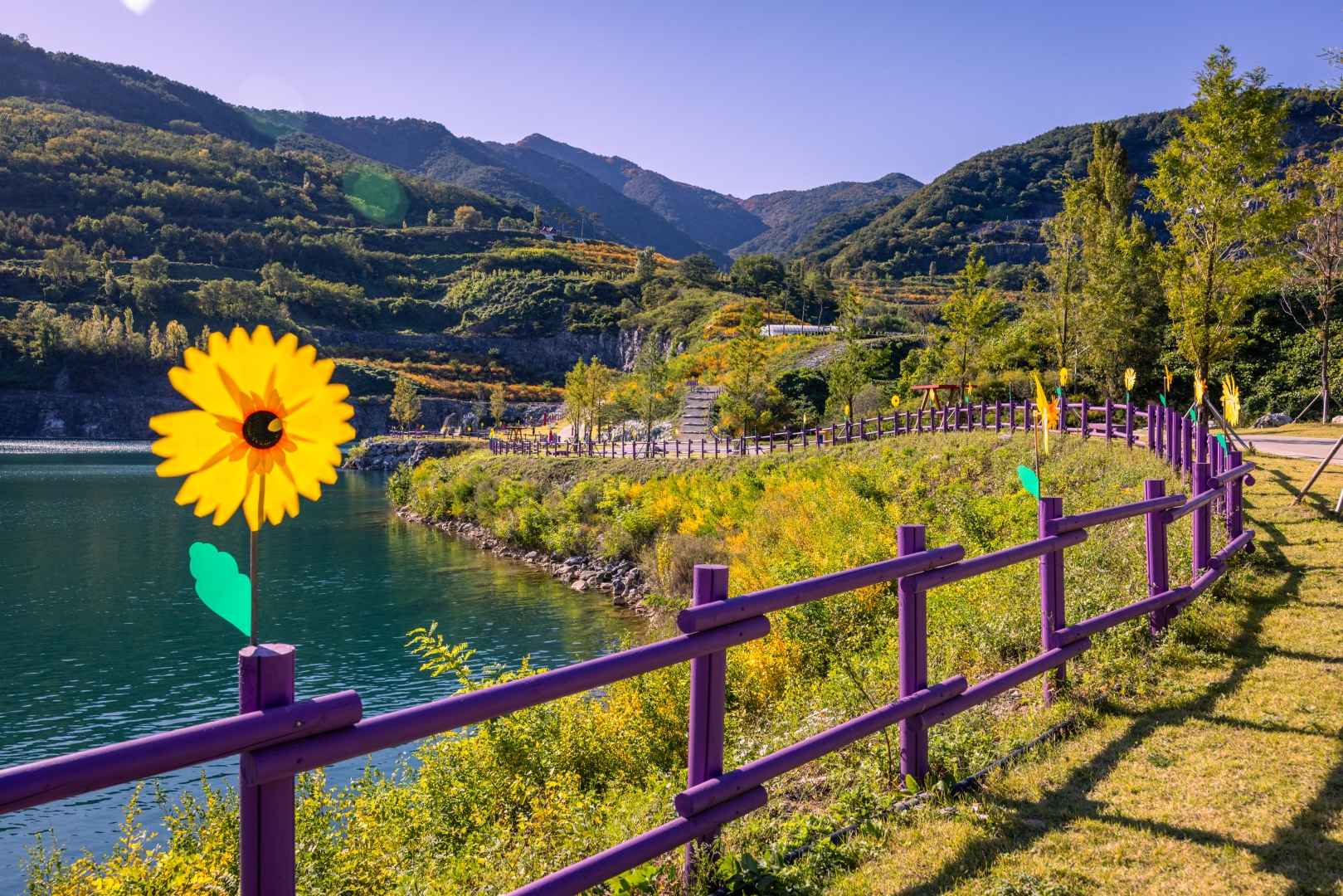 라벤더정원에서 셔틀버스를 타고 종점까지 이동하면 ‘청옥호’와 ‘금곡호’가 나옵니다. 폐채석장 특유의 절벽과 에메랄드빛 호수가 어우러진 이곳은 SNS 인증샷 명소로도 인기예요. 주변 풍경을 감상하며 천천히 산책하기 좋습니다.