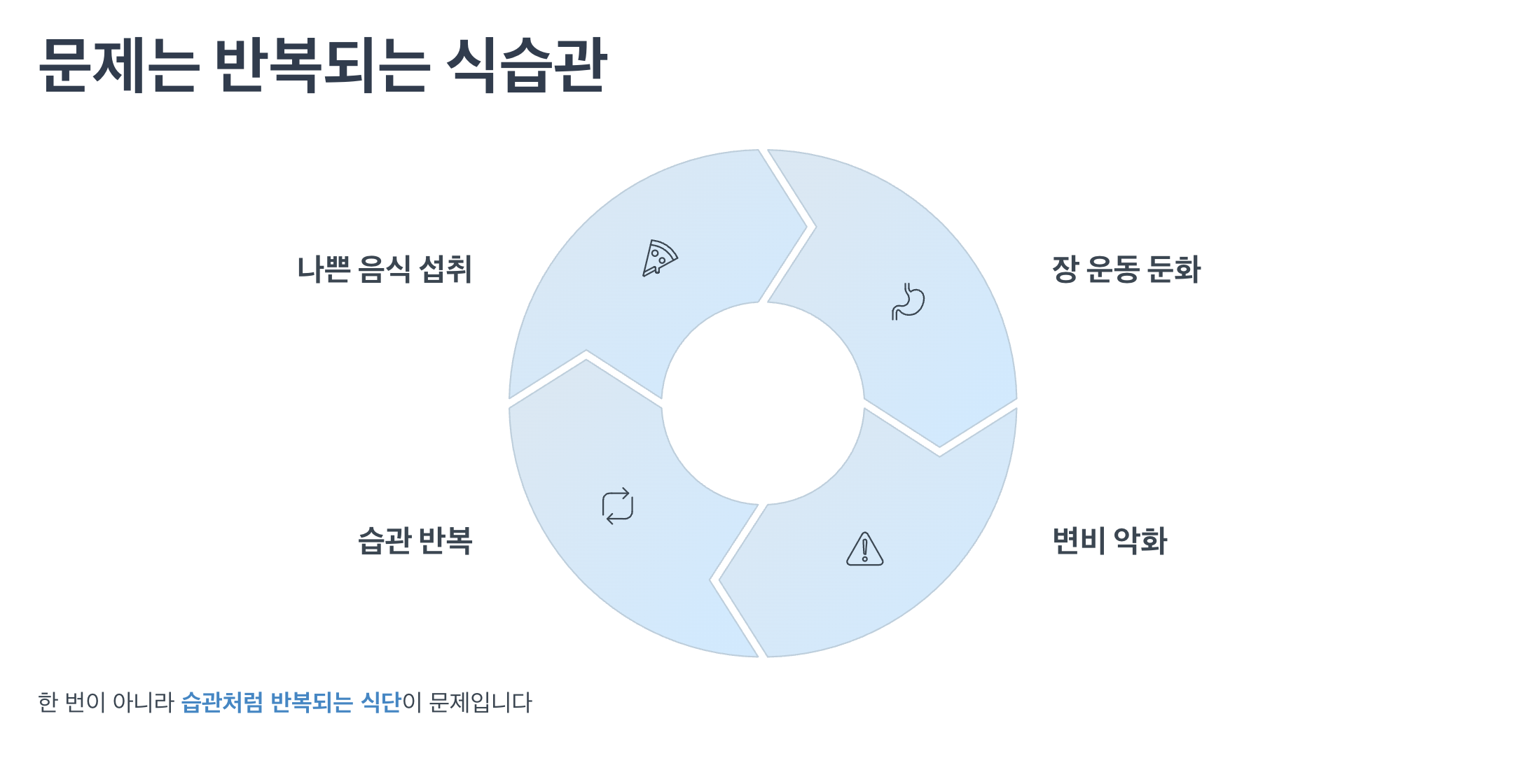 👉 “먹고 바로 배부른데, 배변은 멀어진다”