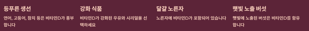 - 강화 우유, 시리얼 등 비타민D 강화식품