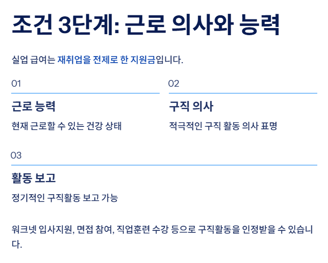 실업 급여 조건 3단계: 근로 의사와 능력