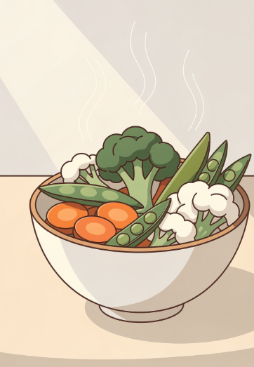 채소는 반드시 익혀서 섭취해야 위 자극을 줄일 수 있습니다. 국이나 찜 형태가 적합합니다.
