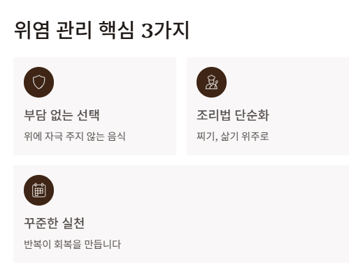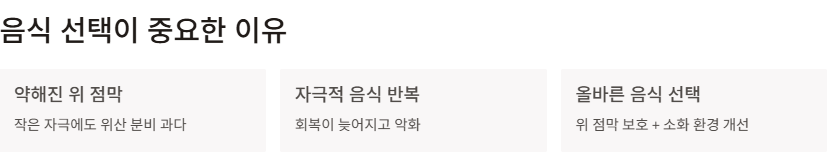 이 기준을 바탕으로 식단을 구성하면 위 부담을 크게 줄일 수 있습니다.
