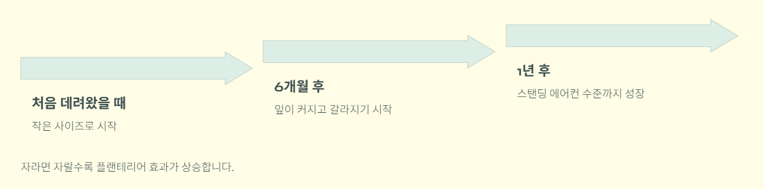 시간이 지나면 스탠딩 에어컨 수준까지 자랄 만큼 성장합니다.