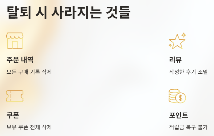 - 포인트·쿠폰·주문내역은 탈퇴 시 전부 소멸