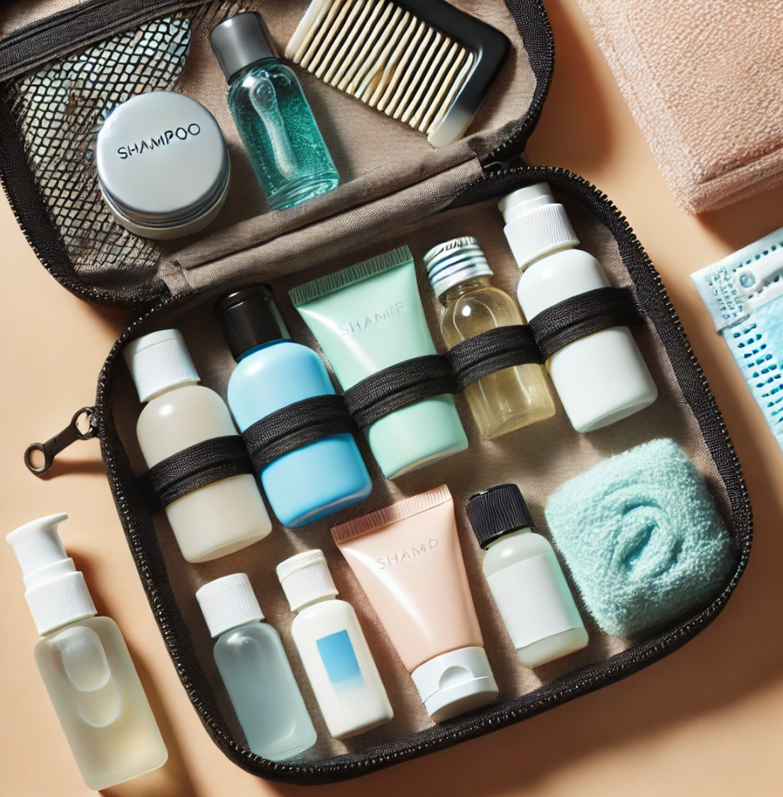 세면도구와 화장품은 소형 공병이나 미니어처 제품을 활용하면 공간과 무게를 절약할 수 있습니다.