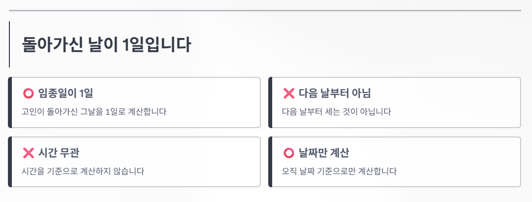 2️⃣ 가장 중요한 원칙: “돌아가신 날이 1일입니다”