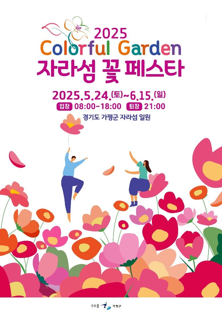 경기도 가평군 자라섬에서 열리는 2025 자라섬 꽃페스타는 봄과 가을, 연 2회 열리는 계절형 꽃축제다. 봄 축제는 5월 24일부터 6월 15일까지 약 3주간 운영되며, 방문 시기에 따라 꽃의 개화 정도가 달라진다. 장소는 가평읍 자라섬로 60, 남도 꽃정원 일대로 지정되어 있다.