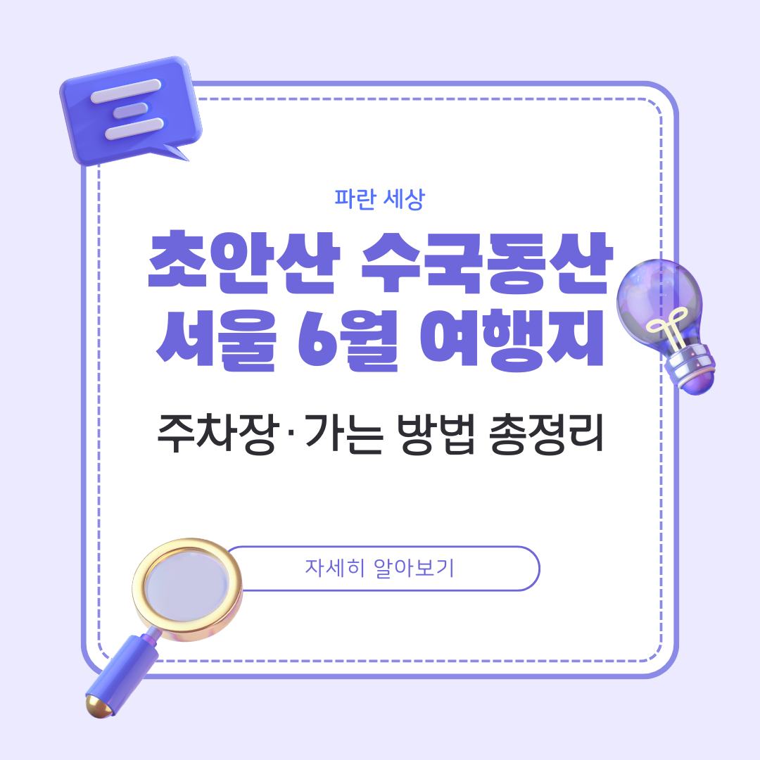 서울 노원구에 위치한 초안산수국동은 매년 여름 수국을 기다리는 이들에게 꾸준히 사랑받는 명소입니다. 특히 6월부터 본격적으로 수국이 피어나기 시작하면서 인근 주민뿐 아니라 서울 전역에서 산책객들이 찾는 자연형 수국정원입니다. 이번에 직접 방문해 확인한 교통 정보와 주차장, 개화 상황, 피크닉 팁까지 꼼꼼히 정리해 드릴게요. 초안산수국동 가는 방법 정리초안산수국동은 대중교통 접근성이 다소 떨어지는 편이지만, 버스를 이용하면 충분히 도착할 수 있어요.가장 가까운 역은 4호선 수유역 또는 1·4호선 창동역입니다.수유역 1번 출구 → 1133번 버스 탑승 → 유원극동아파트 하차 후 도보 1분창동역 2번 출구 → 노원14번 버스 탑승 → 유원극동아파트 하차승용차 이용 시 ‘초안산수국동산’을 내비에 입력하시면 바로..